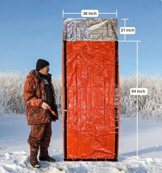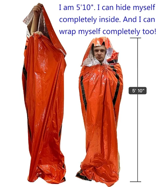 Beg tidur kelangsungan hidup kecemasan boleh meningkatkan peluang anda untuk bertahan hidup dalam semua cuaca, semua musim dan semua keadaan. Ia diperbuat daripada bahan mylar penebat tahan lama yang direka oleh NASA untuk penerokaan ruang angkasa. Ia mengekalkan / mencerminkan 90% haba badan. Ia boleh diguna semula, kalis air dan angin.