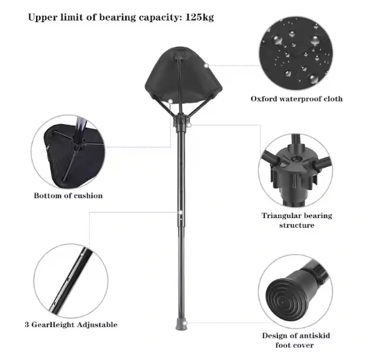 Kerusi perjalanan yang boleh dilipat, selesai dengan lapisan dua lapisan Oxford di permukaan kerusi tripod, lebih tahan lama dan stabil, najis kem tripod ini untuk orang dewasa 300lbs sesuai dengan orang besar dan tinggi untuk menikmati pengalaman yang selesa.