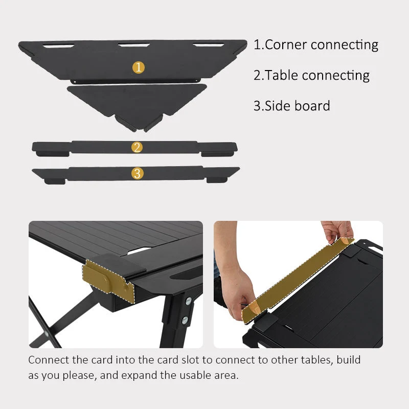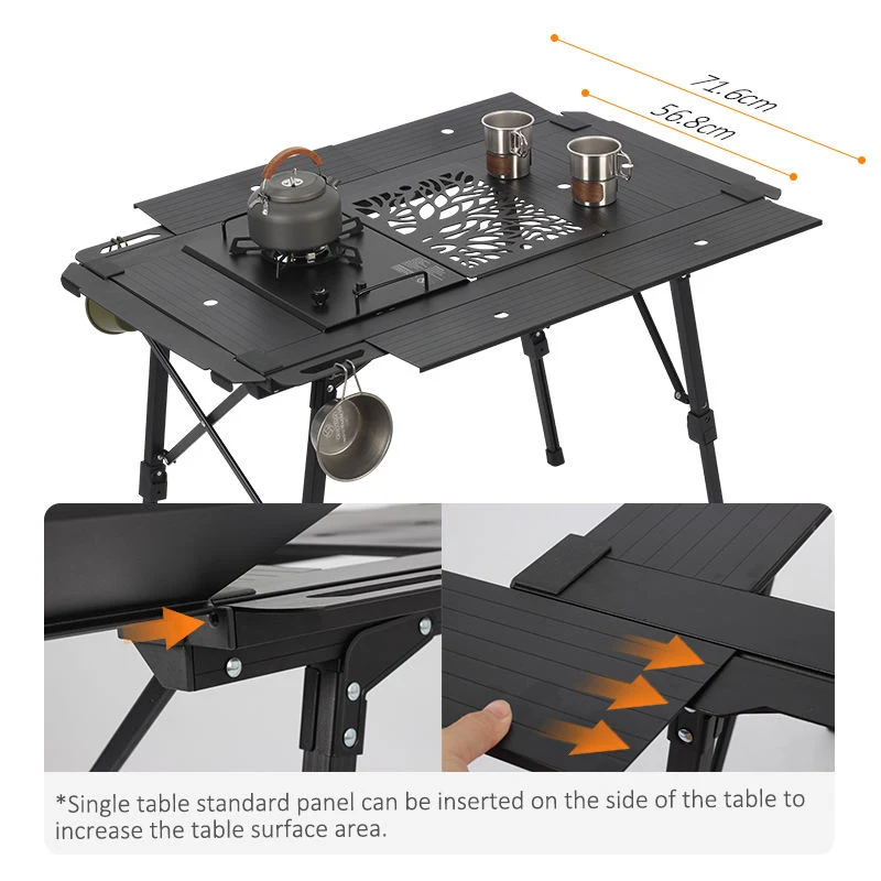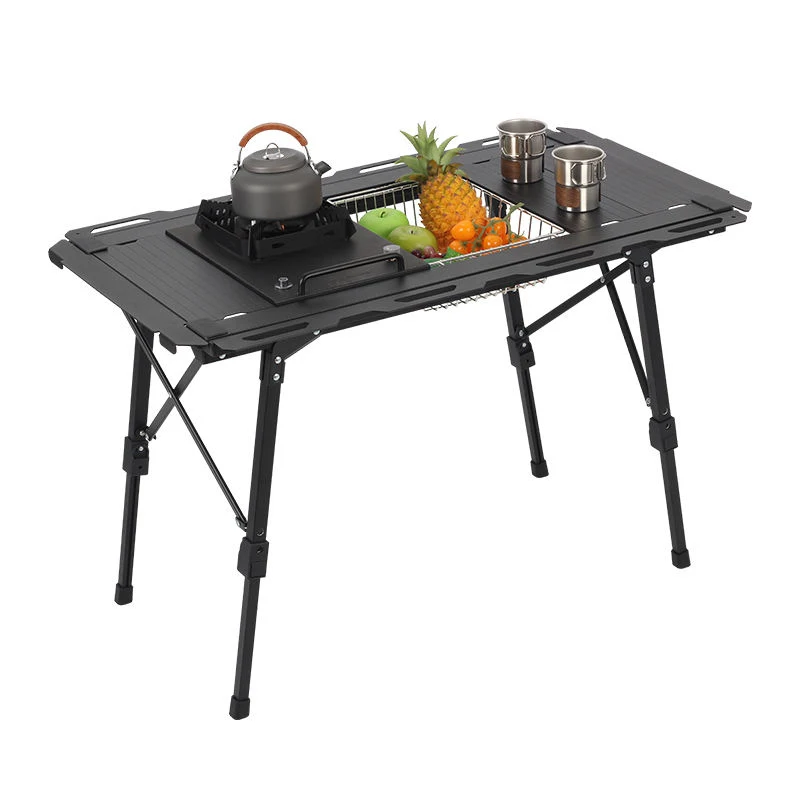 Lipat meja perkhemahan luaran aluminium-besi, sama ada anda meneroka medan gunung yang lasak atau menikmati berkelah di ladang berumput rata, meja perkhemahan ini dengan mudah mengendalikan pelbagai cabaran, memberikan sokongan yang stabil dan boleh dipercayai untuk aktiviti luaran.