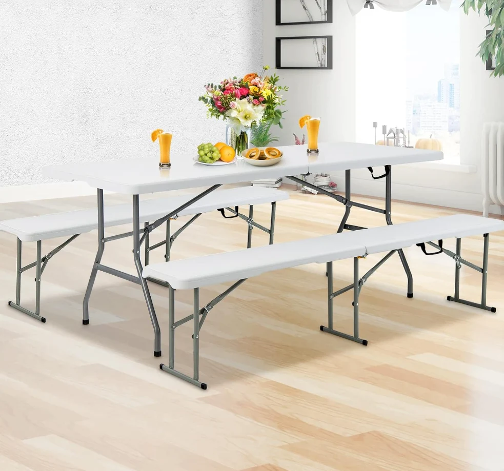 Meja perkhemahan luaran yang berkualiti tinggi, meja berkelah segi empat tepat putih HDPE putih berlipat di luar meja perkhemahan, menyediakan ruang yang luas untuk memegang makanan, pencuci mulut, minuman, atau makanan ringan. Meja lipat ini boleh menampung kira -kira 8 orang untuk berkumpul untuk makan keluarga atau makan malam parti. Dan semua sudut atas meja bulat untuk mengelakkan kecederaan tidak sengaja.