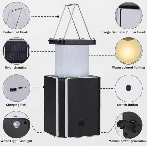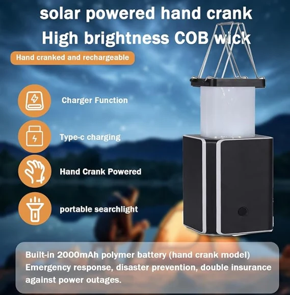 Cahaya perkhemahan solar LED, Lantang Perkhemahan Kecemasan Lantang Penjanaan kuasa tangan. Jika anda tidak mempunyai pengecas di sekitar dan tidak ada matahari, penjana tangan ini sempurna untuk mengecas cahaya.